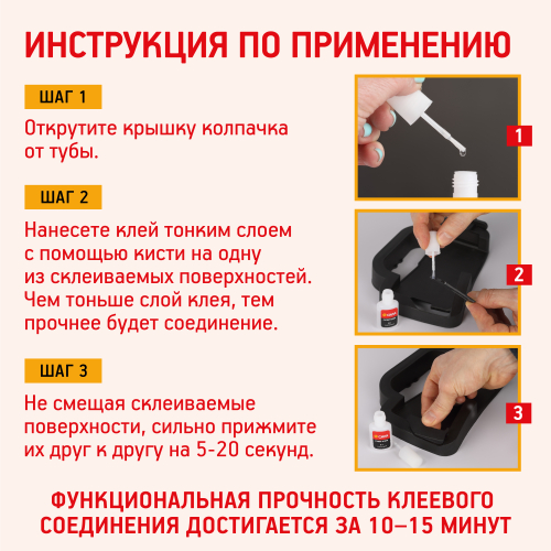 Функциональная прочность клеевого соединения достигается за 10–15 минут