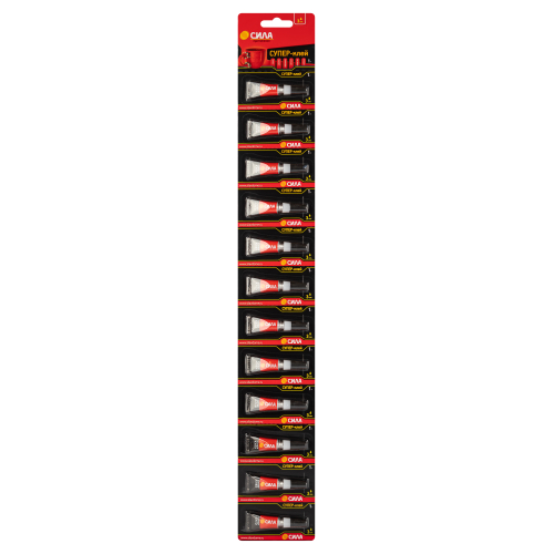Супер-клей СИЛА, идеально подходит для быстрого и эффективного ремонта различных предметов мебели, интерьера и т.д. Накрепко схватывает дерево, резину, керамику, фарфор и пластик, при этом супер клеи экономично расходуются и высыхают за несколько секунд.
