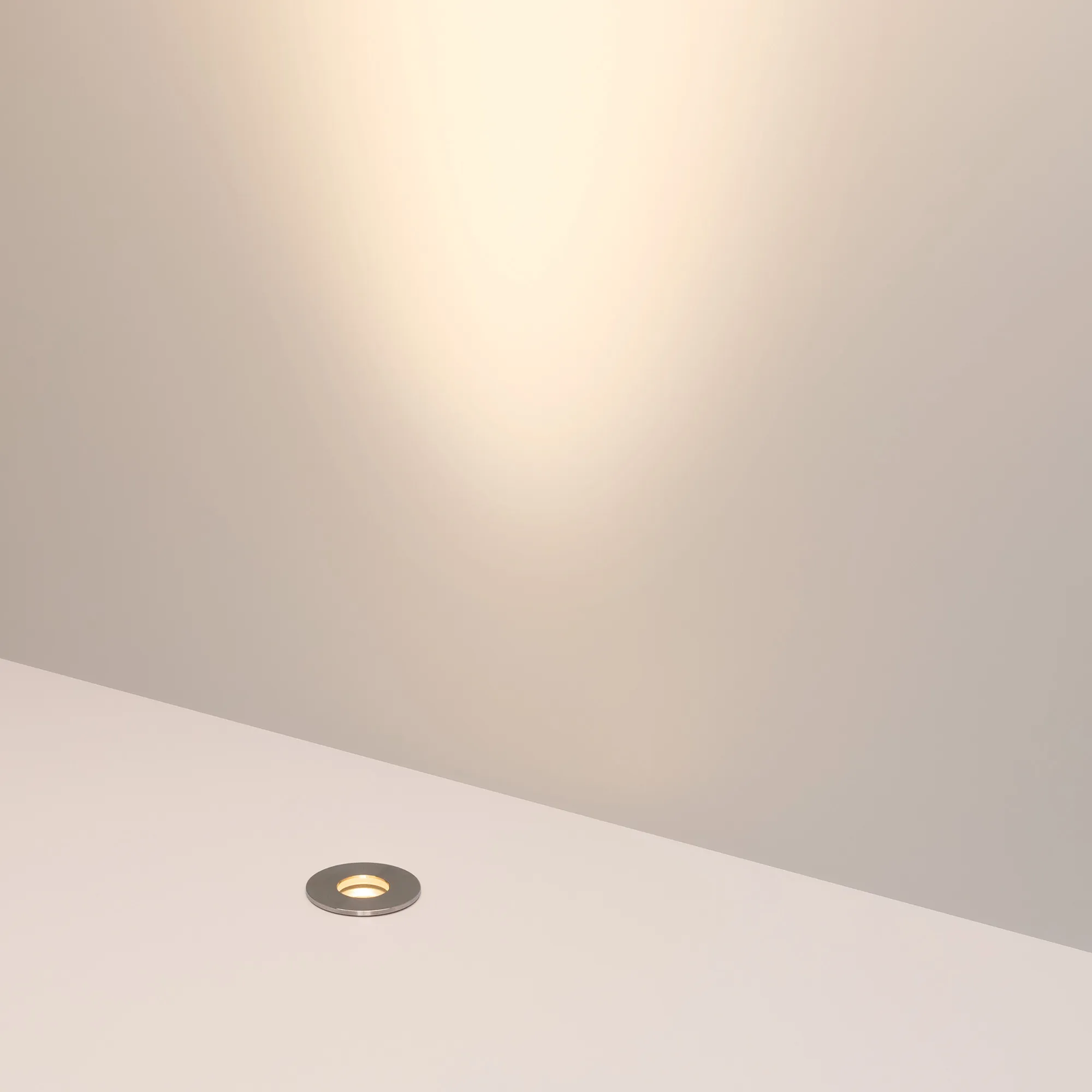 Встраиваемый светодиодный светильник LTD-GROUND мощностью 3 Вт, теплого цвета свечения (3000К), со световым потоком 130 лм предназначен для ландшафтного освещения парковых и садовых дорожек, придомовых территорий, а также декоративной подсветки фасада. Узкий угол излучения 36° позволяет создать четкий акцент на подсвечиваемом объекте. Ударопрочный круглый корпус из нержавеющей стали и алюминиевого сплава Ø40x55 мм и экран из закаленного стекла надежно защищают оптический блок со светодиодом от внешних воздействий. Степень пылевлагозащиты корпуса на уровне IP67 рассчитана на длительное использование на открытом воздухе, а так же обеспечивает надежную работу в неблагоприятных условиях. Установка в отверстие ДxВ Ø33x90 мм. Светильник поставляется в сборе с питающим кабелем длиной 1м, что позволяет легко и быстро подключить его к сети DC 24 В.
