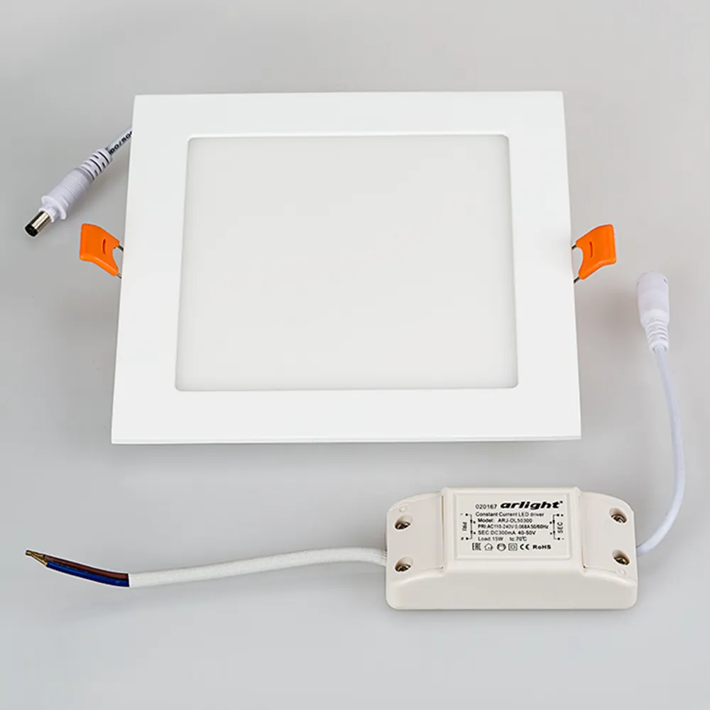 Тонкая квадратная светодиодная панель DL-172x172M-15W Warm White мощностью 15 Вт с теплым белым цветом свечения (3000 К) и уровнем цветопередачи CRI>80 для создания равномерного мягкого освещения. Лаконичный алюминиевый корпус 172х172 мм с матовым рассеивателем будет гармонично смотреться в любом интерьере. Светильник со световым потоком 1125-1200 лм и широким углом излучения 120° обеспечивает равномерное освещение без мерцания и видимости точек светодиодов. Удобные крепления и минимальная толщина позволяют встраивать панель в натяжные и гипсокартонные потолки с помощью пружин в монтажное отверстие диаметром 160×160 мм. Панель поставляется в комплекте с драйвером, что дает возможность безопасно и быстро подключать светильник напрямую к сети 230 В. Дополнительные аксессуары приобретаются отдельно. Идеально подходит для основного освещения в жилых, офисных, торговых и других помещениях.