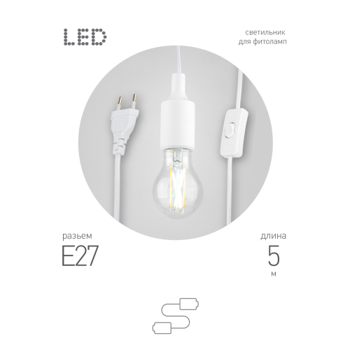 Новый светильник ЭРА FITO-Holder E27 5м с проводом длиной 5 м и выключателем идеально подойдет для любых фитоламп ЭРА с цоколем Е27.