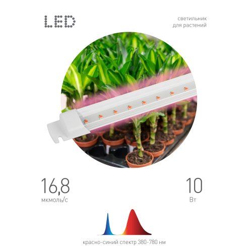 FITO-10W-Т5-RB-Slim–это новые ультратонкие фитосветильники от компании ЭРА. Благодаря красно-синему спектру рассада не вытягивается, а развивается равномерно и последовательно. У взрослых растений активируется фаза цветения. Мощность светильника 10 Вт, корпус выполнен из негорючего пластика.
