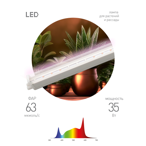 Мощный светодиодный светильник для досветки растений круглый год. Имитирует полноценный световой день для рассады и комнатных культур осенью, зимой и ранней весной. Мощность — 35 Вт. Подходит для применения дома и в теплицах. Овощи, выращенные под данной фитолампой, имеют выраженный, характерный для них аромат и вкус. Рассада легко переносит пересадку и пикировку. В комплекте поставляются все необходимые аксессуары для монтажа и подключения.
