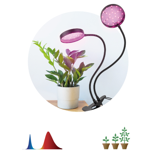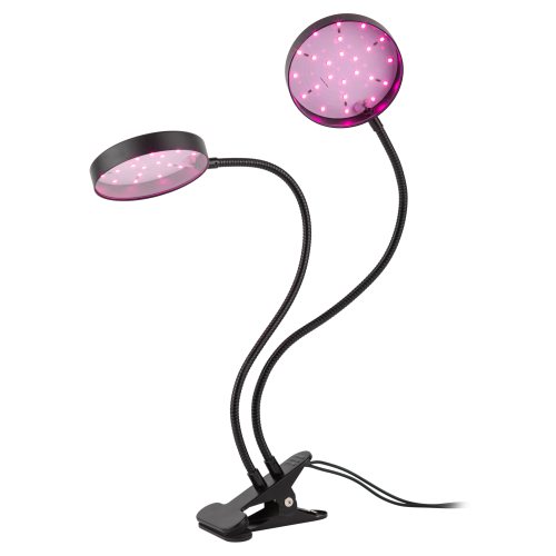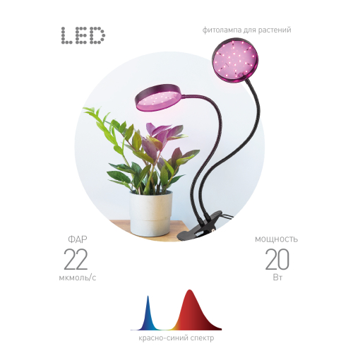 Эстетичный домашний фитосветильник с двумя круглыми плафонами на гибких стойках. Благодаря тугой металлической прищепке быстро и надёжно фиксируется на подоконнике, столешнице, полке. Алюминиевый корпус прочен и обеспечивает хорошую теплоотдачу светодиодов. Направление света каждого из светодиодных плафонов легко регулируется. Округлая форма плафонов выглядит стильно и обеспечивает широкий световой поток. Прищепка позволяет устанавливать фитосветильник как горизонтально, так и вертикально. Прибор выглядит аккуратно и современно, отлично вписывается в любой интерьер.