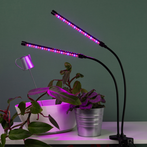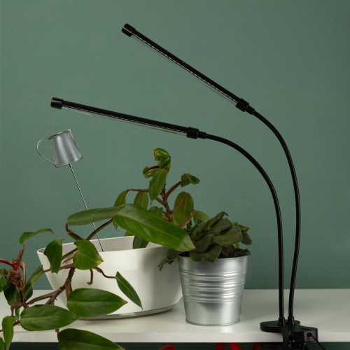 Светильник на прищепке подойдет для любого растения, так как в спектре излучения присутствуют все длины волн. Основной упор в излучении сделан на поддержание оптимального фотосинтеза и набор массы растением. Светильник имеет легко регулирующееся основание, два независимых по работе гнущихся плафона. Черный цвет корпуса легко вписывается в любой интерьер.