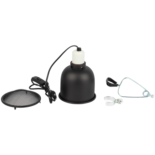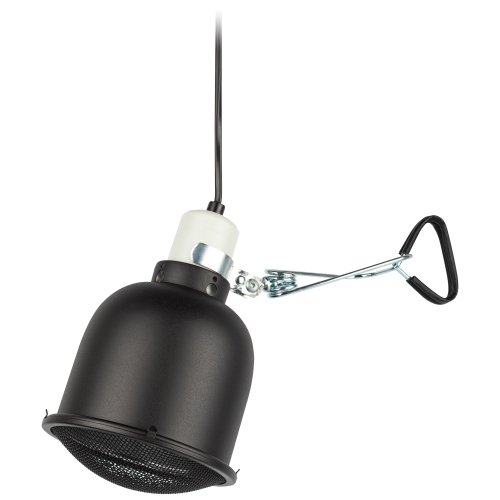 Подвесной светильник для террариумов и брудеров. Для удобства крепления предусмотрен металлический подвес, есть защитная металлическая решётка. Подходит для керамических и инфракрасных ламп, максимальная мощность до 250 Вт. Термостойкий провод длиной 1,5 м для удобства использования светильника оснащён кнопочным выключателем. Аккуратный минималистичный светильник для организации подсветки и обогрева животных. Внимание, лампа в комплект не входит!