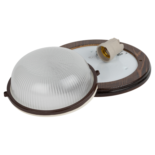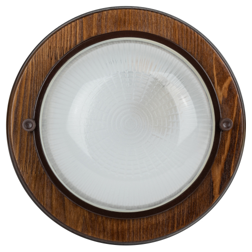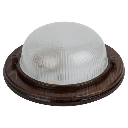 Светильник серии "Кантри", в дизайне которой применено натуральное дерево. Некоторые модели дополнительно защищены деревянной решеткой. Диапазон рабочих температур: от +1°С до +130°С. Материал рассеивателя: селикатное стекло. Материал корпуса: сталь, дерево оттенка орех. Источник света: лампа с цоколем Е27. Габариты: 220х220х84 мм. Степень защиты от окружающей среды: IP54. Данные светильники предназначены для освещения административно-бытовых, производственных помещений и мест общественного пользования.
