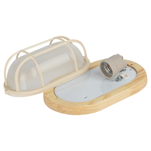 Светильник серии "Кантри", в дизайне которой применено натуральное дерево. Некоторые модели дополнительно защищены деревянной решеткой. Диапазон рабочих температур: от +1°С до +130°С. Материал рассеивателя: селикатное стекло. Материал корпуса: сталь, дерево . Источник света: лампа с цоколем Е27. Габариты: 232х140х88 мм. Степень защиты от окружающей среды: IP54. Данные светильники идеальны для освещения административно-бытовых, производственных помещений и мест общественного пользования.
