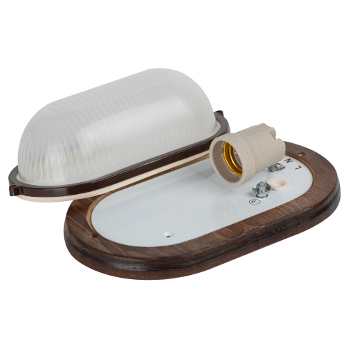 Светильник является частью оригинальной серии "Кантри", в дизайне которой используются элементы натурального дерева. Некоторые модели серии дополнены защитной деревянной решеткой для максимальной надежности. Эти светильники предназначены для освещения внутренних помещений и открытых площадей административно-бытовых, производственных объектов и мест общественного пользования. Диапазон рабочих температур: от +1°С до +130°С. Материал рассеивателя: селикатное стекло. Материал корпуса: сталь, дерево оттенка орех. Источник света: лампа с цоколем Е27. Габариты: 232х140х80 мм. Степень защиты от окружающей среды: IP54.