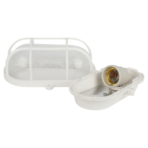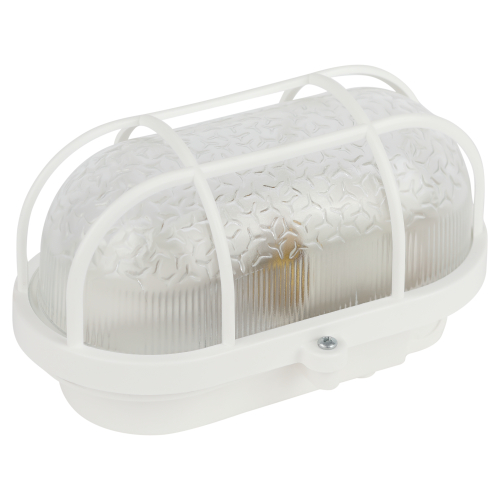 Светильник ЭРА НБП 01-60-002 с решеткой Евро пластик / стекло IP53 E27 max 60Вт 184х115х90 овал белый. Используется для освещения жилых, подсобных, общественных и производственных помещений.