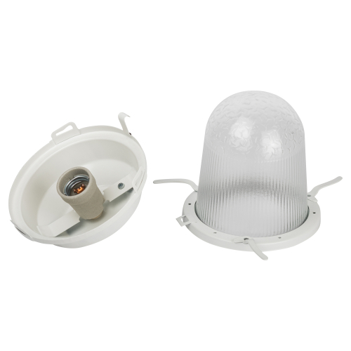 Светильник ЭРА НСП 02-100-001 без решетки Желудь сталь / стекло IP54 E27 max 100Вт 170х260 белый. Используется для освещения жилых, подсобных, общественных и производственных помещений