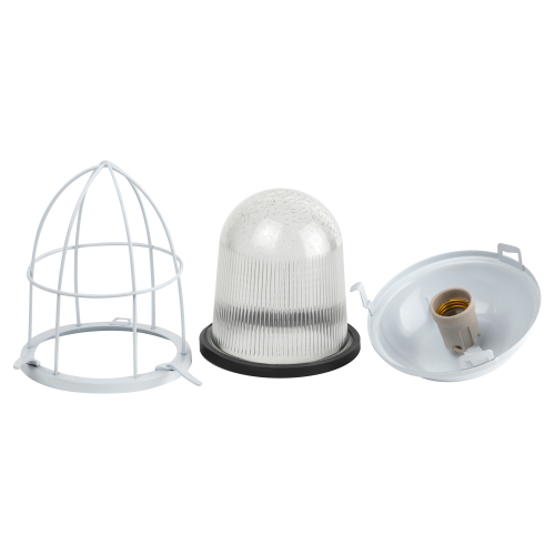 Светильник ЭРА НСП 02-100-003 с решеткой Желудь сталь / стекло IP54 E27 max 100Вт 170х300 белый. Используется для освещения жилых, подсобных, общественных и производственных помещений