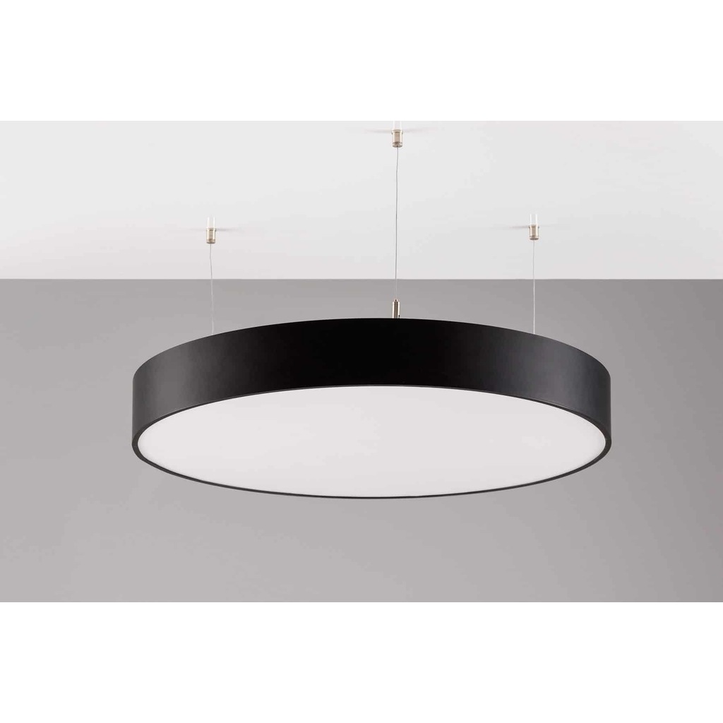 Корпус круга может быть выполнен в черном, белом и сером цветах. Цветовая температура на выбор: теплый цвет (3000К), нейтральный (4000К) или холодный (6500К). Материал корпуса металл, размеры на выбор заказчика. Тип монтажа: подвесной или накладной.