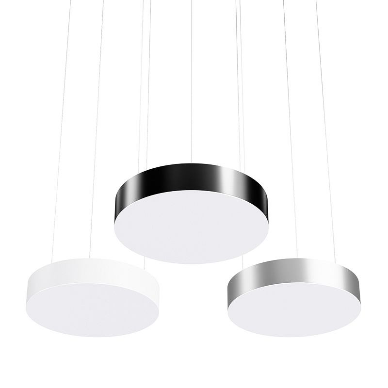 Корпус круга может быть выполнен в черном, белом и сером цветах. Цветовая температура на выбор: теплый цвет (3000К), нейтральный (4000К) или холодный (6500К). Материал корпуса металл, размеры на выбор заказчика. Тип монтажа: подвесной или накладной.