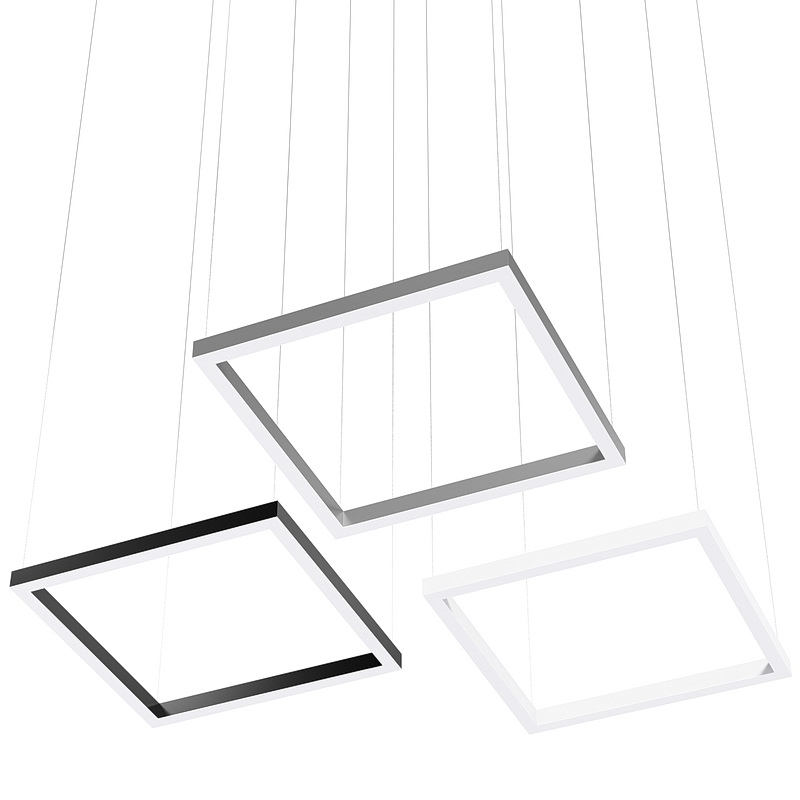 Корпус больших квадратных светильников может быть выполнен в черном и белом цвете. Цветовая температура на выбор: теплый цвет (3000К), нейтральный (4000К) или холодный (6500К). Материал корпуса – металл, размеры на выбор. Вариант монтажа – подвесной. Размеры, форму и мощность можно выбрать, так как модель изготавливается на заказ.