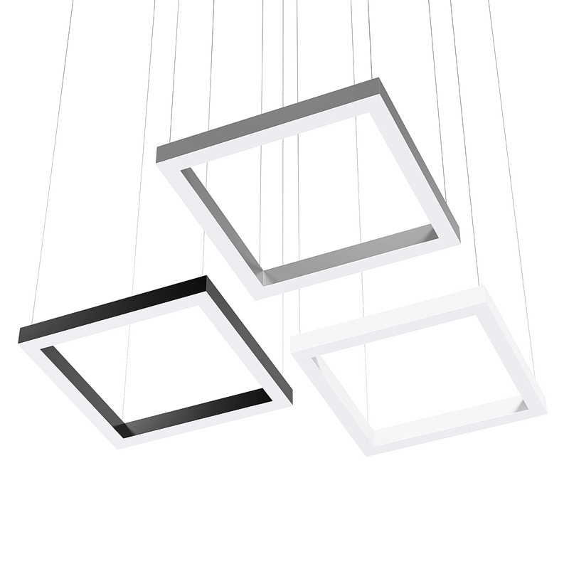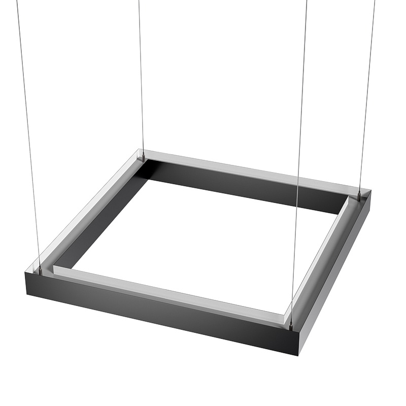 Корпус больших квадратных светильников может быть выполнен в черном и белом цвете. Цветовая температура на выбор: теплый цвет (3000К), нейтральный (4000К) или холодный (6500К). Материал корпуса – металл, размеры на выбор. Вариант монтажа – подвесной. Размеры, форму и мощность можно выбрать, так как модель изготавливается на заказ.