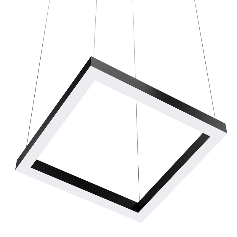 Корпус больших квадратных светильников может быть выполнен в черном и белом цвете. Цветовая температура на выбор: теплый цвет (3000К), нейтральный (4000К) или холодный (6500К). Материал корпуса – металл, размеры на выбор. Вариант монтажа – подвесной. Размеры, форму и мощность можно выбрать, так как модель изготавливается на заказ.