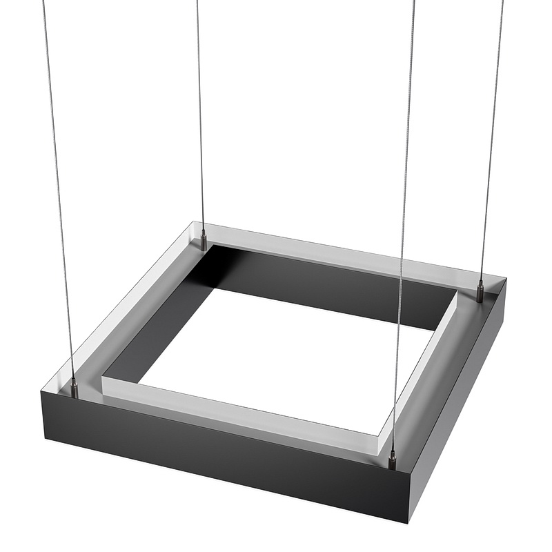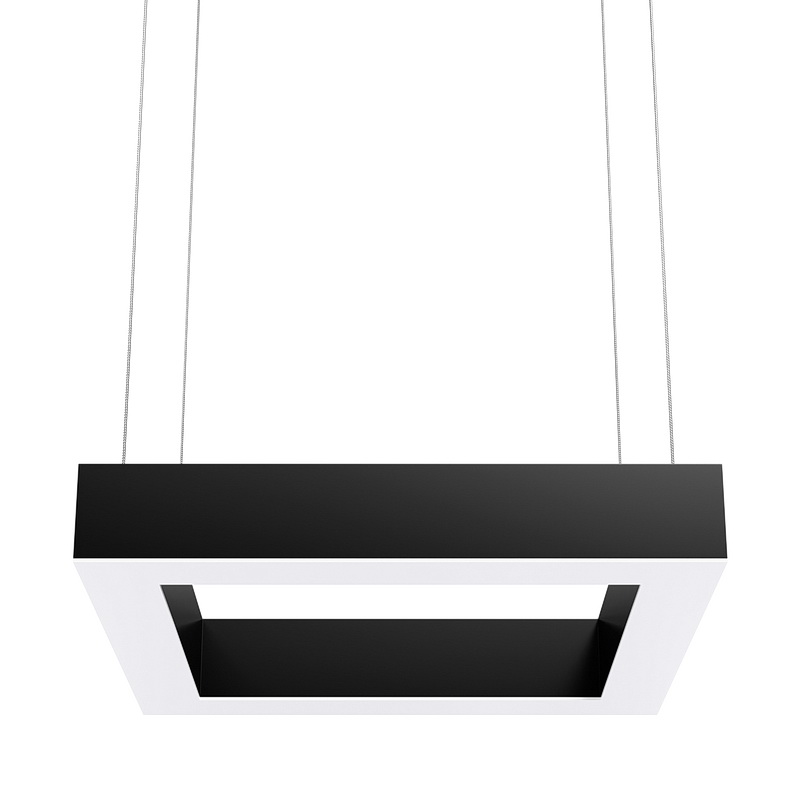 Корпус больших квадратных светильников может быть выполнен в черном и белом цвете. Цветовая температура на выбор: теплый цвет (3000К), нейтральный (4000К) или холодный (6500К). Материал корпуса – металл, размеры на выбор. Вариант монтажа – подвесной. Размеры, форму и мощность можно выбрать, так как модель изготавливается на заказ.