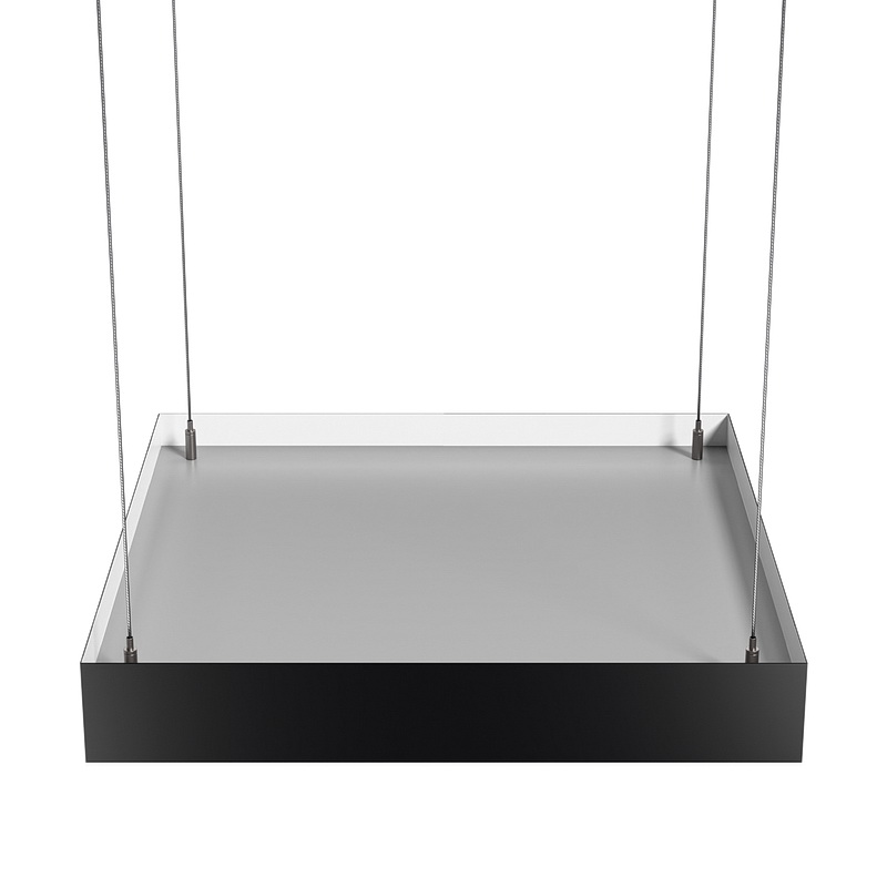 Корпус больших квадратных светильников может быть выполнен в черном и белом цвете. Цветовая температура на выбор: теплый цвет (3000К), нейтральный (4000К) или холодный (6500К). Материал корпуса – металл, размеры на выбор. Вариант монтажа – подвесной. Размеры, форму и мощность можно выбрать, так как модель изготавливается на заказ.