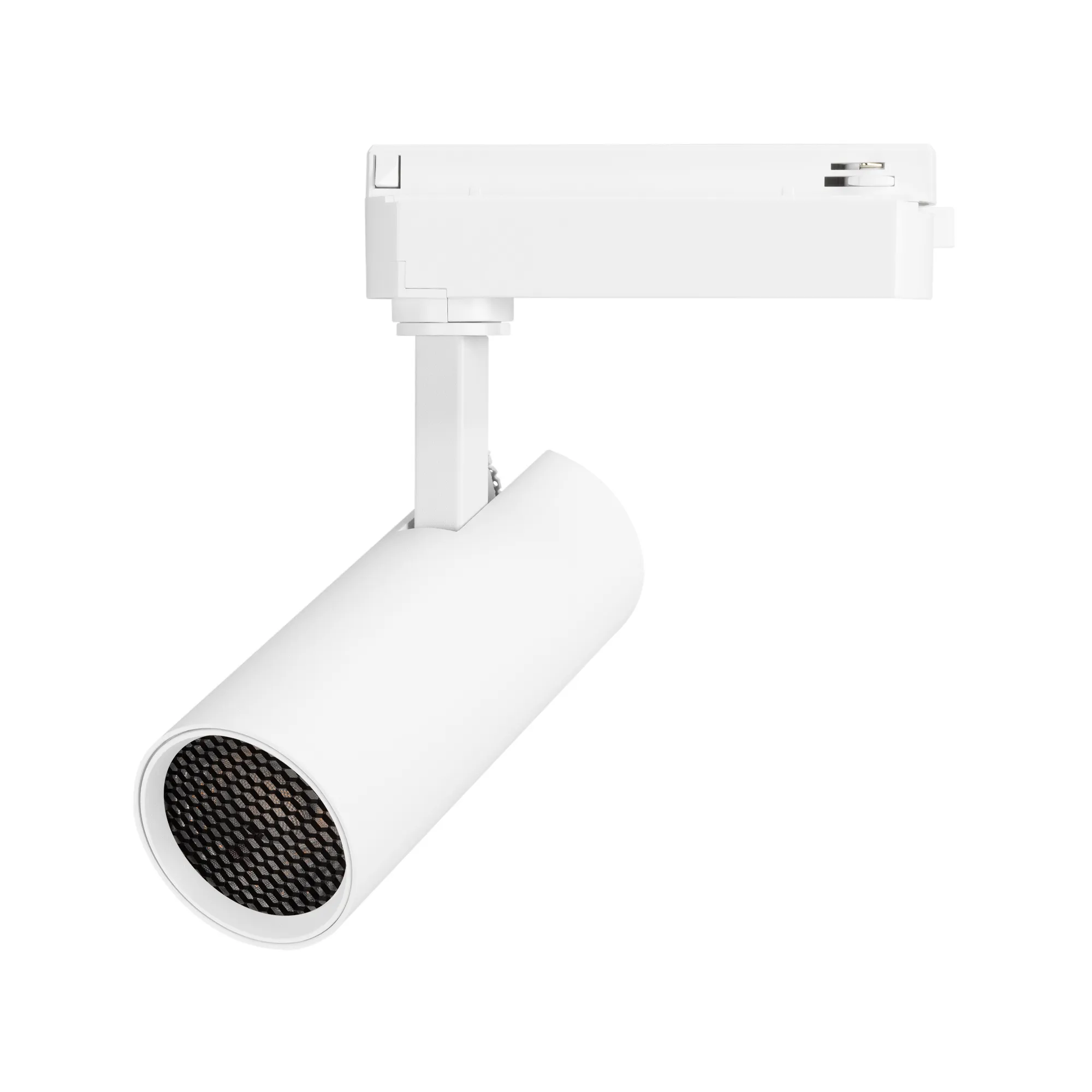 Одинарный трековый светильник GERA мощностью 10 Вт с тёплым цветом свечения (3000 К) и индексом цветопередачи CRI>90 для создания локального направленного освещения в квартирах, офисах, музеях, магазинах и др. помещениях. Светильник с узким углом рассеивания 24 градусов и световым потоком 1000 лм обеспечивает качественное освещение и высокую световую отдачу, оснащен решеткой HONEYCOMB. Стильный лаконичный корпус из алюминия окрашен в белый цвет высококачественной порошковой краской. Корпус светильника поворачивается вокруг своей оси, что позволяет быстро менять направление светового луча. Светильник легко устанавливается в однофазный трек серии LGD и подключается к сети переменного тока 230 В с помощью встроенного драйвера. Дополнительные аксессуары приобретаются отдельно.