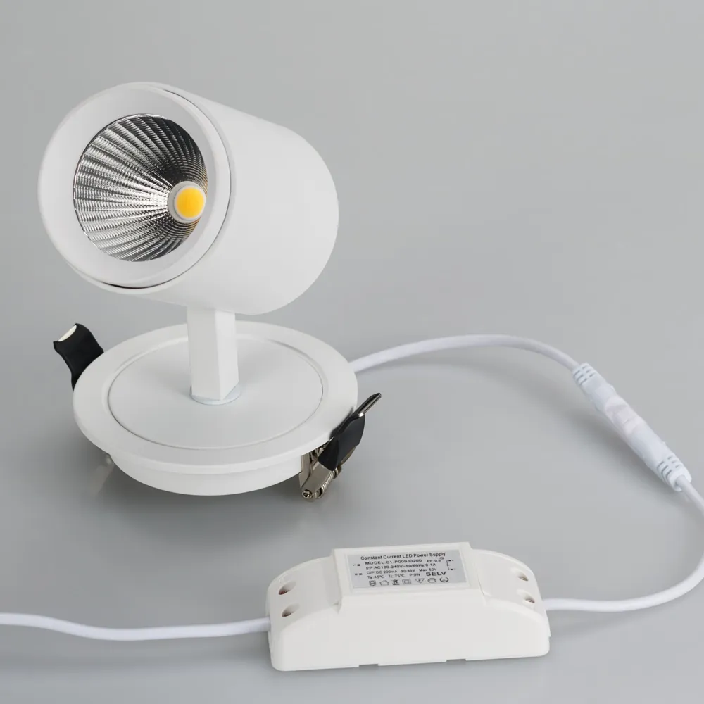 Встраиваемый поворотный светильник LUMOS мощностью 9 Вт с высокой световой эффективностью и индексом цветопередачи CRI>90 предназначен для создания качественного акцентного освещения в квартирах, офисах, музеях, магазинах, выставочных и торговых залах с высокими требованиями к качеству света. Модель обеспечивает отличную передачу цветов. Регулируемый световой модуль позволяет легко менять световые акценты в помещении без использования специальных инструментов. Узкий угол излучения и световой поток 600 лм обеспечивают яркое, направленное освещение. Корпус светильника изготовлен из алюминия и покрыт высококачественной стойкой порошковой краской. Лаконичная форма светильника и удобство установки встраиваемым способом обеспечивают легкость монтажа. Корпус с защитой от пыли IP20 подойдет установки внутри помещений, где нет контакта с водой или другими жидкостями. Подключается к сети 230 В с помощью встроенного драйвера. Низкая пульсация обеспечивает комфортное освещение без мерцания.