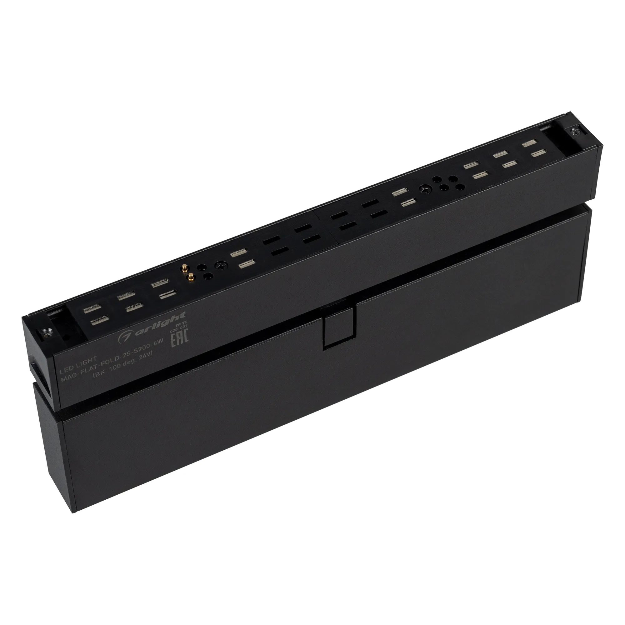 Поворотный светильник MAG-FLAT-FOLD-25-S200-6W Day4000 (BK, 100 deg, 24V) мощностью 6 Вт для магнитных треков MAG-25. Дневной белый цвет свечения (4000 К) и высокий индекс цветопередачи CRI>90 обеспечивают качественное освещение с точной передачей цветовых оттенков. Световой поток 400 лм и широкий угол излучения 100° идеально подходят для организации общей подсветки в разных типах помещений. Световой модуль светильника отклоняется относительно горизонтали на 90°, что позволяет за секунды менять световые акценты. Есть возможность диммирования. У светильника безопасное напряжение 24 В и быстрая установка в шинопровод с помощью магнитов. Драйвер для подключения поставляется отдельно.