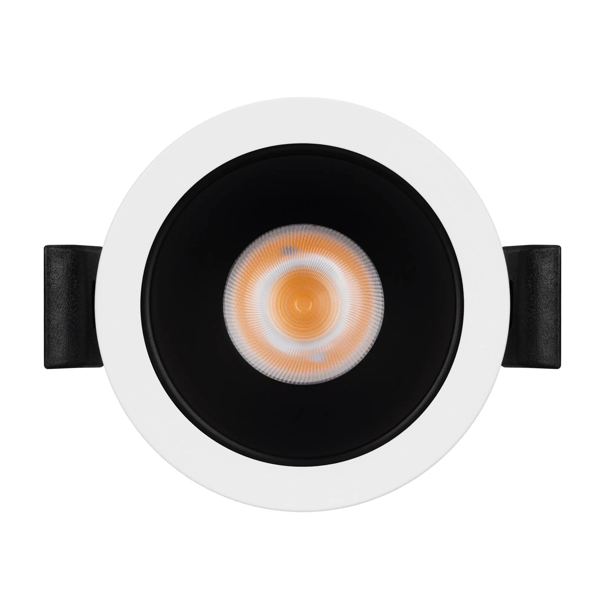 Встраиваемый светильник даунлайт с высоким индексом цветопередачи CRI>90 обеспечивает качественное освещение с точной передачей цветовых оттенков. Алюминиевый круглый корпус с декоративным рефлектором является интересным дизайнерским решением, создавая эффект света из ниоткуда - Darklight. Низкий коэффициент дискомфорта делает освещение очень комфортным для глаз. Защита корпуса на уровне IP20, cветовая эффективность 87 лм/Вт и узкий угол излучения 35 градусов подходят для направленного освещения торговых, офисных, жилых помещений, где отсутствует контакт с водой или другими жидкостями. Светильник легко устанавливается с помощью пружин в монтажное отверстие. Драйвер поставляется в комплекте, позволяя быстро подключить светильник напрямую к сети переменного тока 230 В. Низкая пульсация обеспечивает равномерное освещение без мерцания. Диммирование возможно при замене штатного драйвера.