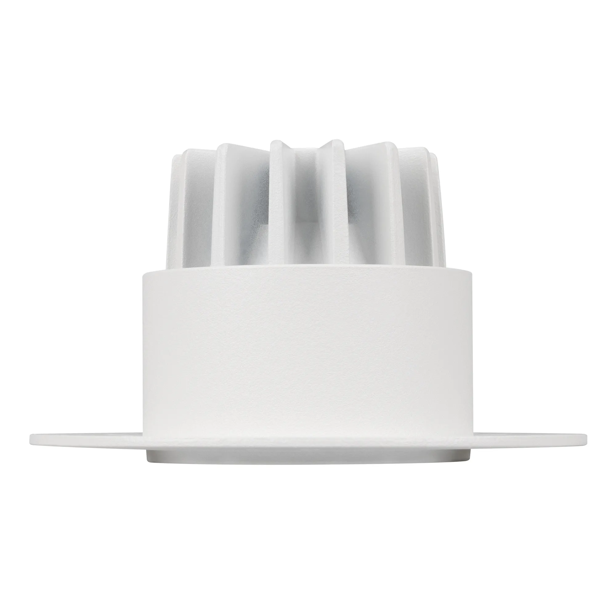 Встраиваемый безрамочный светильник под шпаклевку мощностью 8.4 Вт. Предназначен для освещения жилых, офисных, торговых и других помещений. Теплый белый цвет свечения (3000 К) и световой поток 700 лм. Заглубленная оптика ограничивает боковое излучение, тем самым исключая появление ослепляющего эффекта. Высокий индекс цветопередачи (CRI>90) и узкий угол излучения 32° для локального освещения. Светильник встраивается в установочное отверстие диаметром 65 мм. Драйвер в комплекте для подключения к сети 230 В.
