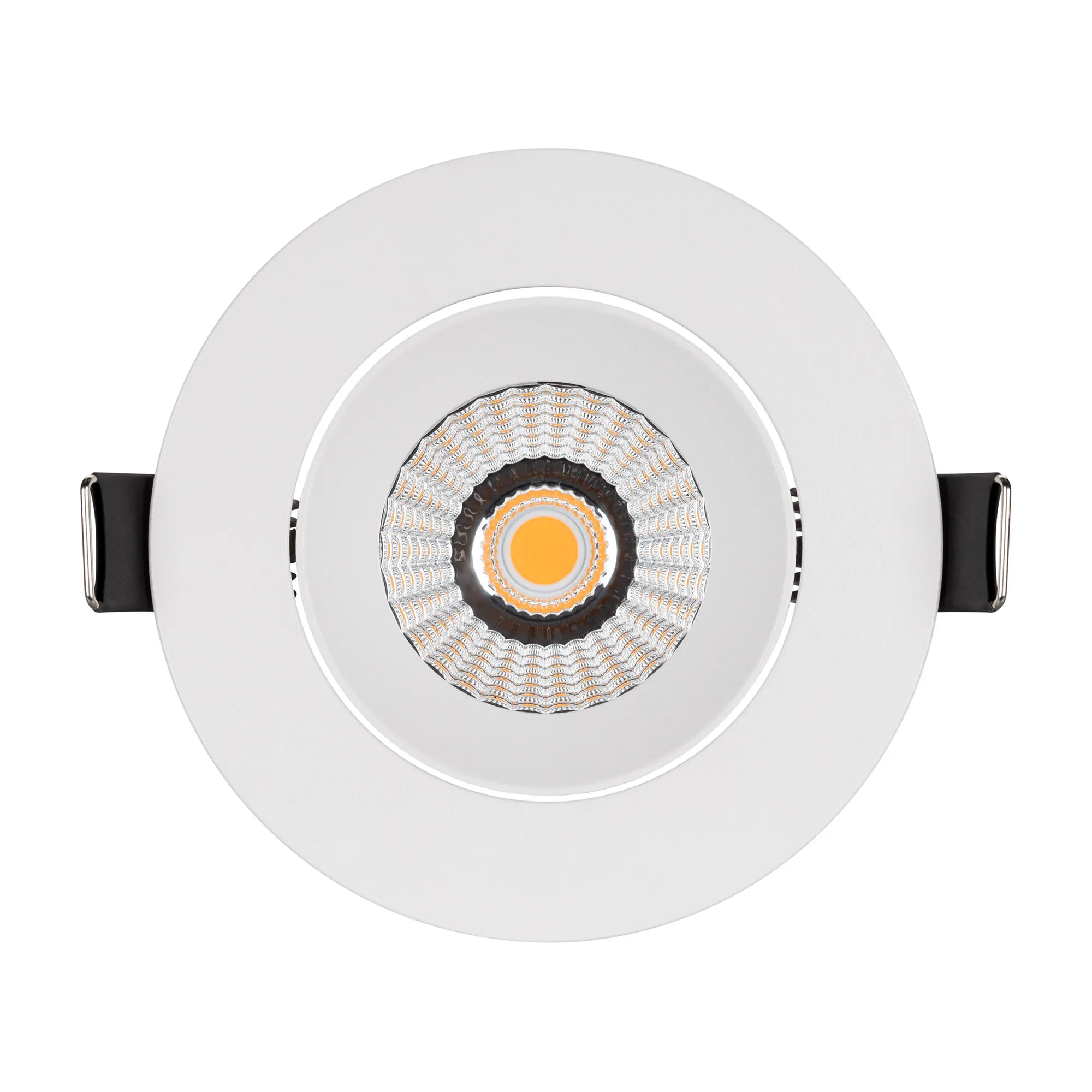 Встраиваемый поворотный светильник ATOLL мощностью 10 Вт предназначен для качественного освещения торговых, коммерческих, жилых и других помещений. Благодаря низкому коэффициенту дискомфорта, достигается комфортное освещение. Светильник обладает высоким индексом цветопередачи CRI>90 для естественного восприятия оттенков. Угол излучения 60 градусов подойдет для общего освещения. Компактный корпус выполнен из окрашенного алюминия и имеет пылевлагозащиту на уровне IP54, что позволяет применять модель в помещениях с высоким уровнем влажности и запыленности. Световой модуль отклоняется в обе стороны на 30 градусов от вертикальной оси, мгновенно изменяя направление светового потока. Светильник легко устанавливается с помощью пружин в монтажное отверстие. Драйвер IP54, поставляется в комплекте, позволяя безопасно и быстро подключать светильник напрямую к сети переменного тока 230 В. Низкий уровень пульсации обеспечивает равномерное освещение без мерцания.