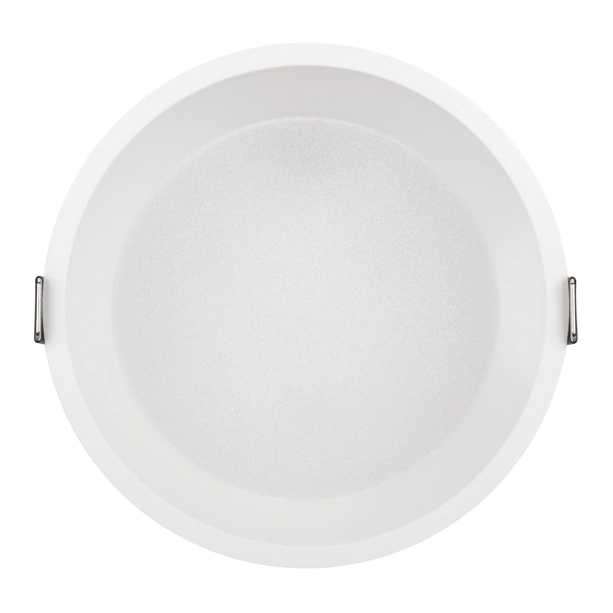 Встраиваемый круглый светильник с индексом цветопередачи CRI>90 и низкой пульсацией обеспечивает равномерное освещение без мерцания и видимости точек светодиодов с точной передачей цветовых оттенков. Алюминиевый корпус белого цвета с утопленным светодиодным модулем является интересным дизайнерским решением, создавая эффект света из ниоткуда и делая освещение комфортным для глаз. Особая конфигурация корпуса позволяет эффективно отводить тепло и продлевает срок службы светодиодов. Светильник с широким углом излучения 90 градусов и световой эффективностью 70 лм/Вт подходит для качественного основного освещения. Легко устанавливается с помощью пружин в монтажное отверстие. Драйвер поставляется в комплекте и позволяет быстро подключать светильник напрямую к сети переменного тока 230 В. Диммирование возможно при замене штатного драйвера. Степень защиты от пыли IP20 позволяет применять модель в жилых, коммерческих, торговых и других помещениях, где отсутствует контакт с водой.