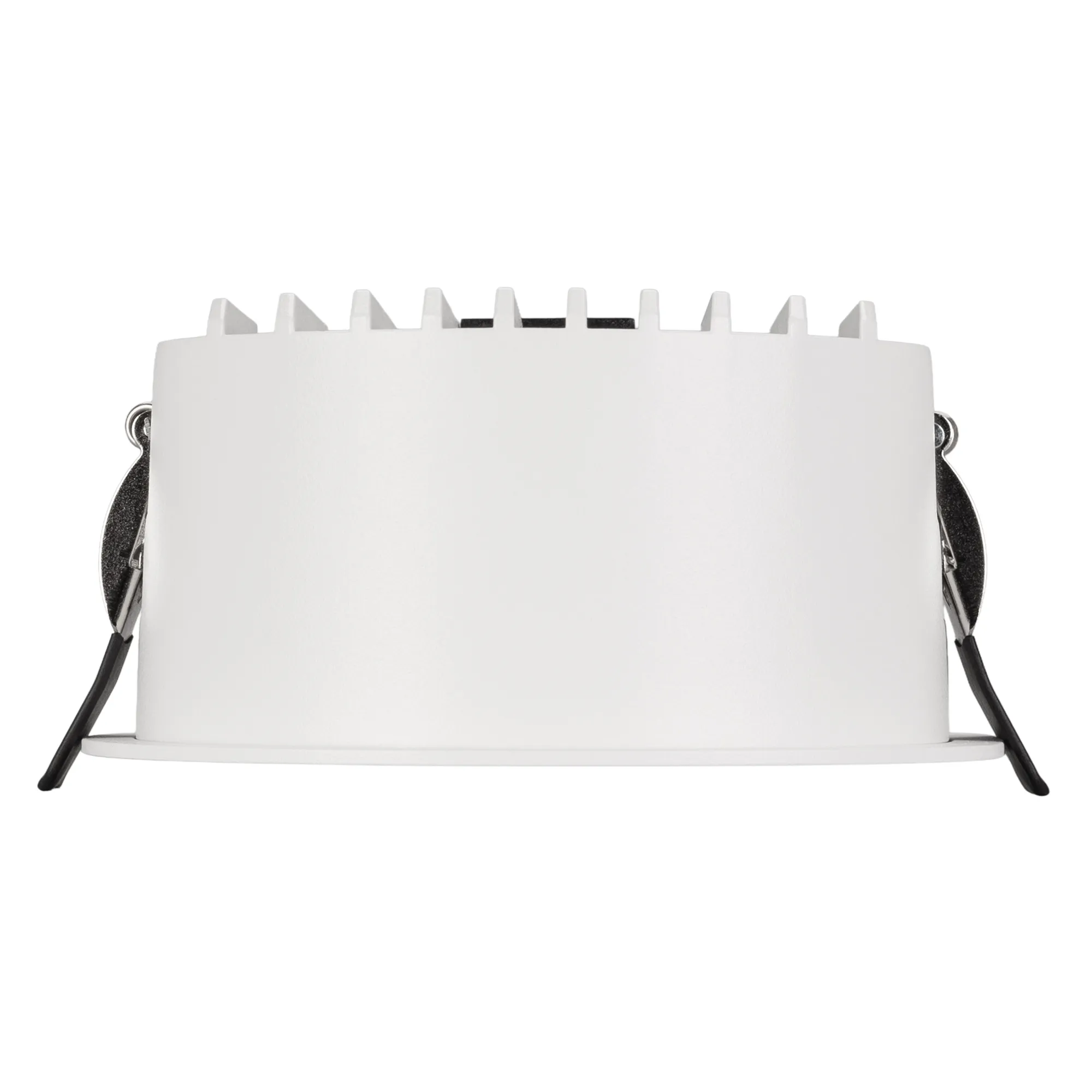 Встраиваемый круглый светильник с индексом CRI>90 обеспечивает точную передачу цветовых оттенков. Алюминиевый корпус белого цвета с утопленным светодиодным модулем является интересным дизайнерским решением, создавая эффект света из ниоткуда. Особая конфигурация корпуса позволяет эффективно отводить тепло и продлевает срок службы светодиодов, а также делает освещение равномерным, комфортным для глаз, без мерцания и видимости точек светодиодов. Светильник с широким углом излучения 90 градусов и эффективностью 90 лм/Вт обеспечивает качественное освещение с высокой светоотдачей. Легко устанавливается с помощью пружин в монтажное отверстие. Драйвер IP54, в комплекте позволяет быстро подключать светильник напрямую к сети переменного тока 230 В. Диммирование возможно при замене штатного драйвера. Защита корпуса на уровне IP54 позволяет устанавливать светильник в местах с повышенной влажностью. Предназначен для основного освещения в жилых, коммерческих, торговых помещениях.