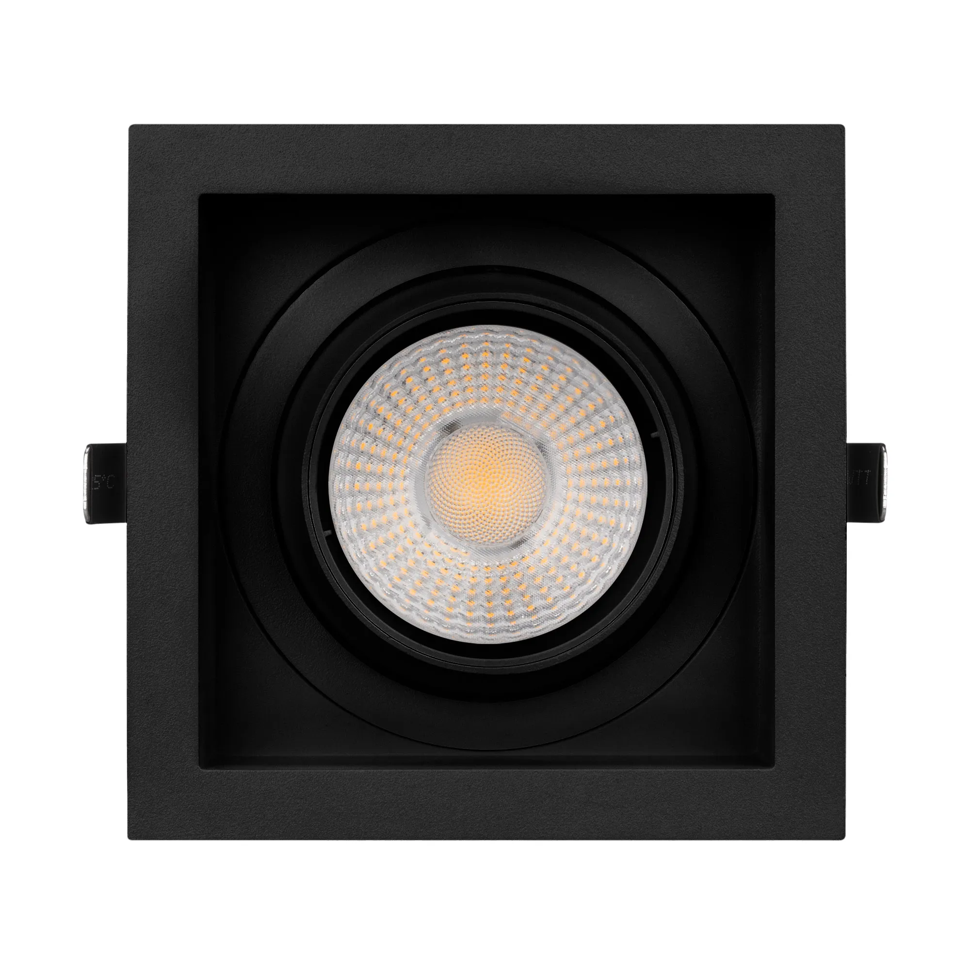 Встраиваемый карданный поворотный светильник с высоким индексом цветопередачи CRI>92 предназначен для создания качественного освещения. За основу поворотного механизма светильника взят принцип кардана – подвижное соединение двух колец, вложенных одно в другое. Световой модуль вращается вокруг своей оси на 360 градусов и отклоняется от горизонта на 30 градусов, что позволяет с лёгкостью регулировать направление пучка света и его концентрацию на определенной зоне. Особая конфигурация корпуса из алюминия оригинально смотрится в интерьере и позволяет эффективно отводить тепло. Светильник с углом рассеивания 50 градусов отлично подходит как для локальной акцентной подсветки витрин, прилавков магазинов, бутиков и стендов выставочных залов, так и для общего освещения. Легко устанавливается с помощью пружин в монтажное отверстие потолка. В комплекте поставляется драйвер, что позволяет безопасно и быстро подключать светильник напрямую к сети переменного тока 230 В.