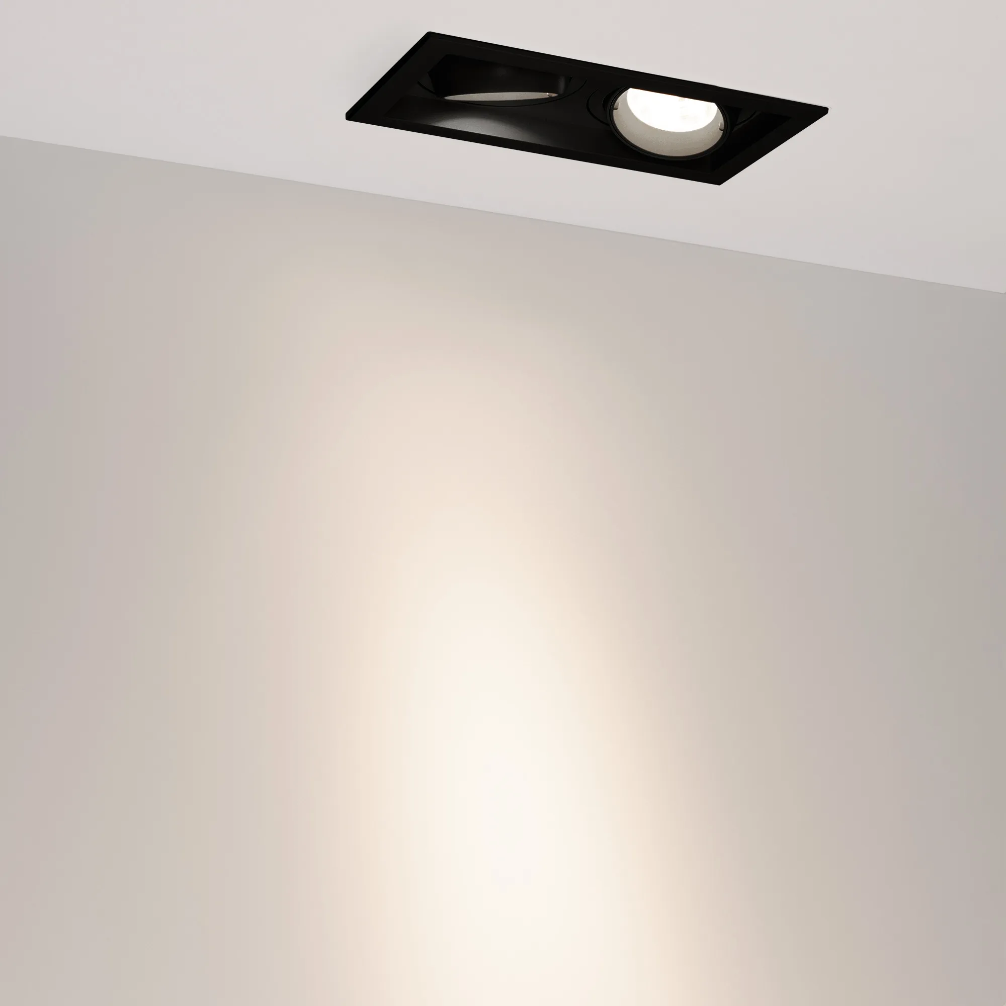 Встраиваемый карданный поворотный светильник с высоким индексом цветопередачи CRI>92 предназначен для создания качественного освещения. За основу поворотного механизма светильника взят принцип кардана – подвижное соединение двух колец, вложенных одно в другое. Световой модуль вращается вокруг своей оси на 360 градусов и отклоняется от горизонта на 30 градусов, что позволяет с лёгкостью регулировать направление пучка света и его концентрацию на определенной зоне. Особая конфигурация корпуса из алюминия оригинально смотрится в интерьере и позволяет эффективно отводить тепло. Светильник с углом рассеивания 20 градусов отлично подходит как для локальной акцентной подсветки витрин, прилавков магазинов, бутиков и стендов выставочных залов, так и для общего освещения. Легко устанавливается с помощью пружин в монтажное отверстие потолка. В комплекте поставляется драйвер, что позволяет безопасно и быстро подключать светильник напрямую к сети переменного тока 230 В.