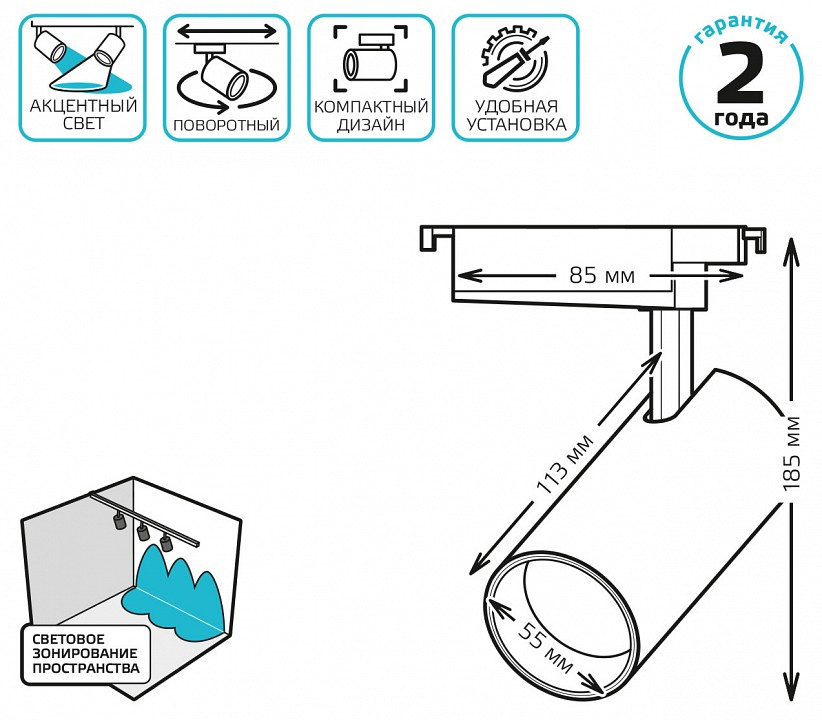 поворотный светильник, однофазная система