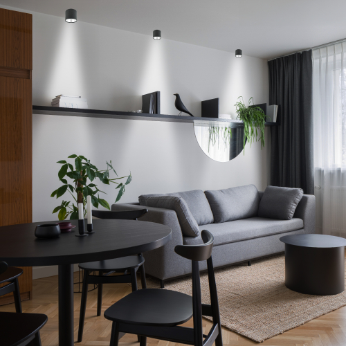 Светильники направленного света подчёркивают структуру материалов стен; создают интересный световой рисунок на стенах; можно использовать как по отдельности, так создавать целые системы; нейтральный свет оптимально как для дома, так и для общественных пространств.