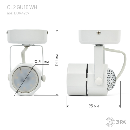 Светильник OL2 GU10 WH направленного света подчёркивает структуру материалов стен. Имеет несложное техническое обслуживание (легкость замены ламп и др.), механизм регулировки наклона в любую сторону. Цоколь для источника света GU10, напряжение питания 220В ~50/60Гц, материал металл + пластик, цвет светильника белый, размер D60*L95*H120, максимальная мощность лампы 50 Вт, степень защиты IP20