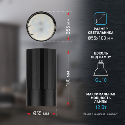 Накладной светильник OL32 BK применяется для акцентного освещения и светового зонирования помещений. Может так же использоваться как основной источник света. Универсальный дизайн и небольшой размер светильника позволяют устанавливать его в помещениях любых типов и предназначений. Создает уютную и комфортную обстановку. Цоколь для источника света GU10, напряжение питания ~230В 50/60Гц, материал алюминий, железо, цвет светильника черный, размер D55*H100мм, максимальная мощность лампы 12Вт, степень защиты IP20