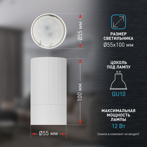 лампа MR16 с цоколем GU10 (в комплект не входит)