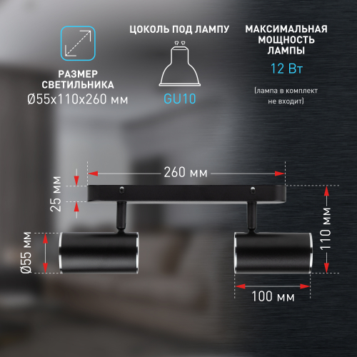 лампа MR16 с цоколем GU10 (в комплект не входит)