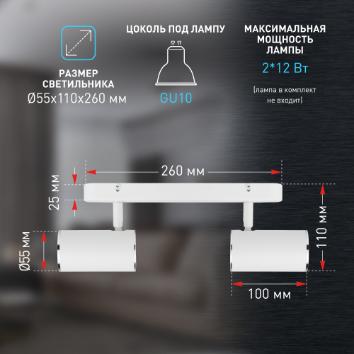 лампа MR16 с цоколем GU10 (в комплект не входит)