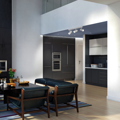Светильники направленного света подчёркивают структуру материалов стен; создают интересный световой рисунок на стенах; можно использовать как по отдельности, так создавать целые системы; нейтральный свет оптимально как для дома, так и для общественных пространств.