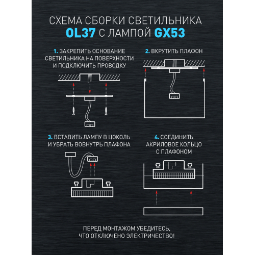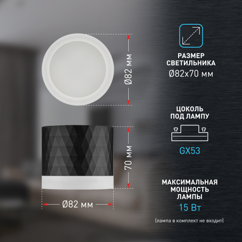 Накладной светильник OL37 BK является практичным и одновременно стильным. Корпус выполнен из алюминия, рисунок нанесен станком ЧПУ и покрыт устойчивой порошковой краской. Монтаж светильника очень простой. Нет необходимости делать врезное отверстие, чтобы закрепить его. Благодаря простому креплению, светильник можно установить как на стенах, так и на потолке, лестницах и дугих повернхностях помещеня. Цоколь для источника света GX53, напряжение питания ~230В 50/60Гц, материал алюминий, пластик, железо, цвет светильника черный, размер D82*H70мм, максимальная мощность лампы 15Вт, степень защиты IP20