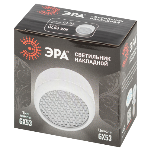 Накладной светильник OL56 WH делает помещение зрительно более стильным и интересным. Используя по периметру несколько однотипных осветительных устройств, можно сформировать интересные световые геометрические рисунки. Цоколь для источника света GX53, напряжение питания ~230В 50/60Гц, материал металл, цвет светильника белый, размер D83х50мм, максимальная мощность лампы 15Вт, степень защиты IP20