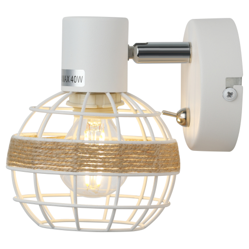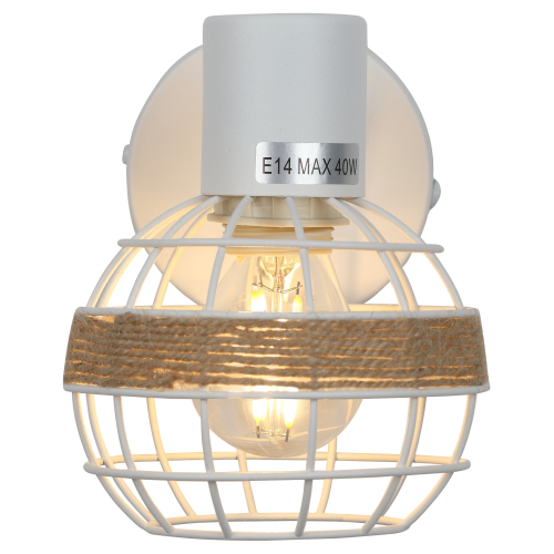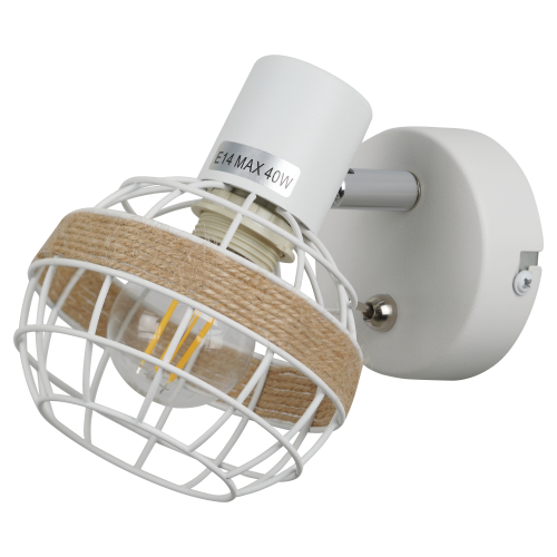 Стильные белые поворотные споты с решетчатыми плафонами, декорированные джутом. Доступны в вариантах на 1, 2 и 3 лампы, идеально подходящих для любого интерьера. Эти светильники добавят уюта в атмосферу вашего дома
