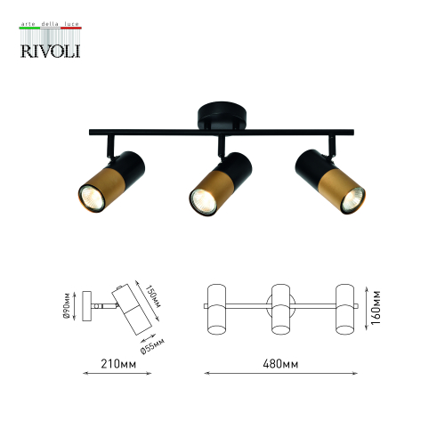 Настенно-потолочные светильники Rivoli – это дизайнерская коллекция итальянского бренда, представленная моделями под разное количество ламп: арт. 7073-701 – спот под 1 лампу, арт. 7073-702 – спот под 2 лампы, арт. 7073-703 – спот под 3 лампы, арт. 7073-704 – спот под 4 лампы. Все настенно-потолочные споты коллекции поворотные, позволяют регулировать направление каждой лампы. Лампы для спотов - GU10 15 Вт.