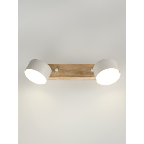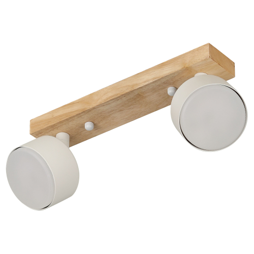 Серия белых настенно-потолочных светильников с деревянным основанием и поворотными плафонами — сочетание натуральных материалов и функциональности. Модели на 1, 2, 3 и 4 лампы с цоколем GX53, мощностью до 15 Вт (лампы в комплект не входят). Поворотные плафоны позволяют направлять свет по вашему желанию.