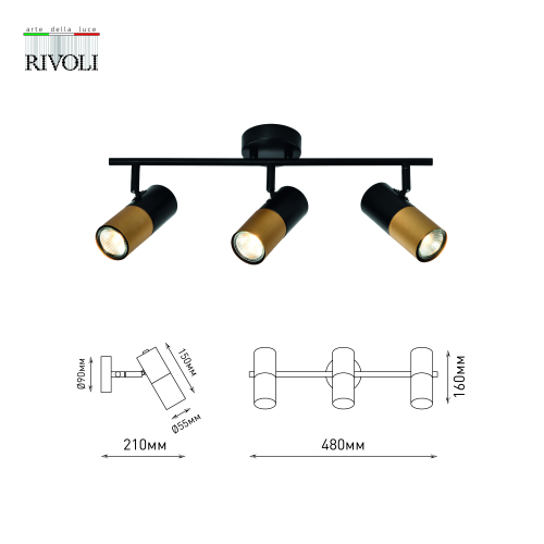 Настенно-потолочные светильники Rivoli Belladonna – это дизайнерская коллекция итальянского бренда, представленная моделями под разное количество ламп: арт. 7073-701 – спот под 1 лампу, арт. 7073-702 – спот под 2 лампы, арт. 7073-703 – спот под 3 лампы, арт. 7073-704 – спот под 4 лампы. Все настенно-потолочные споты коллекции поворотные, позволяют регулировать направление каждой лампы. Лампы для спотов Belladonna - GU10 15 Вт.