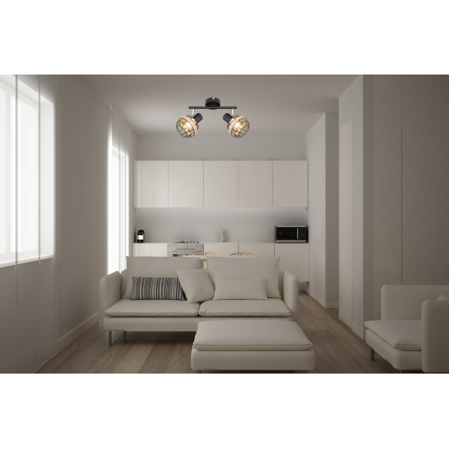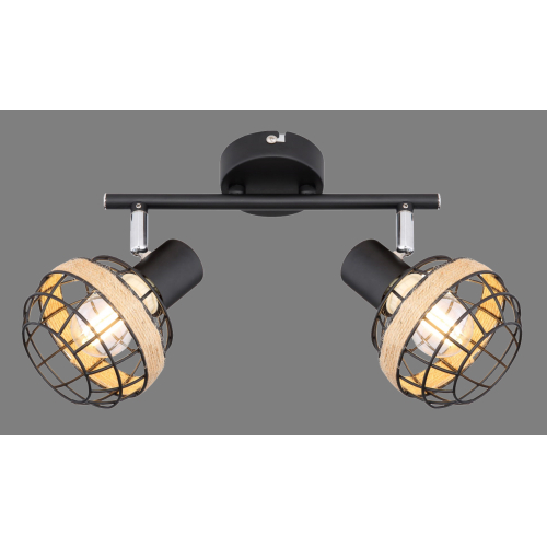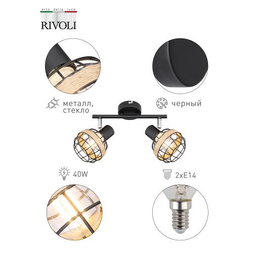 Оригинальные светильники-споты для любого пространства от гостиной и спальни до прихожей и коридора. Сетчатый металлический плафон чёрного цвета декорирован натуральным льняным жгутом. Выверенные геометрические формы смягчаются и оживают благодаря экологичному акценту в виде бечёвки из природного материала. Отличный вариант для любого современного пространства, где ценится минимализм, практичность и стильные детали. Споты Rivoli Fedora прослужат долго за счёт качественного поворотного механизма. Коллекция представлена спотом на 2 лампы.