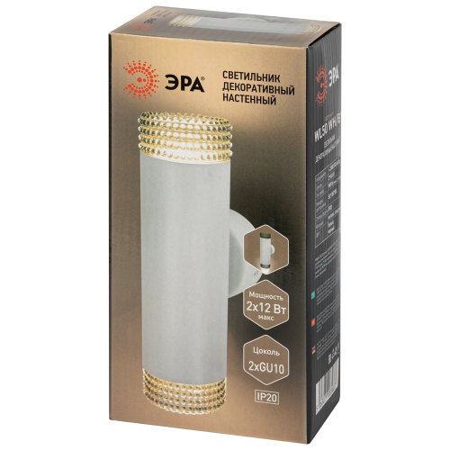 Светильник настенный декоративный WL50 WH/BK идеально подойдет для интерьера в стиле классика, неоклассика, шебби-шик. Может быть использован на кухне, в спальне, в детской, в гостиной, а так же в коммерческих помещениях соответствующего стиля. Корпус светильника выполнен из металла, декоративная часть из акрила, окрашенного в массе, с фактурой кристаллов. Свет от лампы MR-16 проникает в декоративный рассеиватель и создает дополнительное свечение в помещении: прозрачный распределяет свет вокруг, дымчатый приглушает яркость лампы. Цоколь для источника света GU10, напряжение питания 230В ~50/60Гц, материал металл, акрил, цвет светильника белый, черный, размер D55х185х85мм, максимальная мощность лампы 2*12Вт, степень защиты IP20