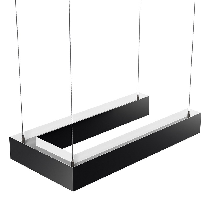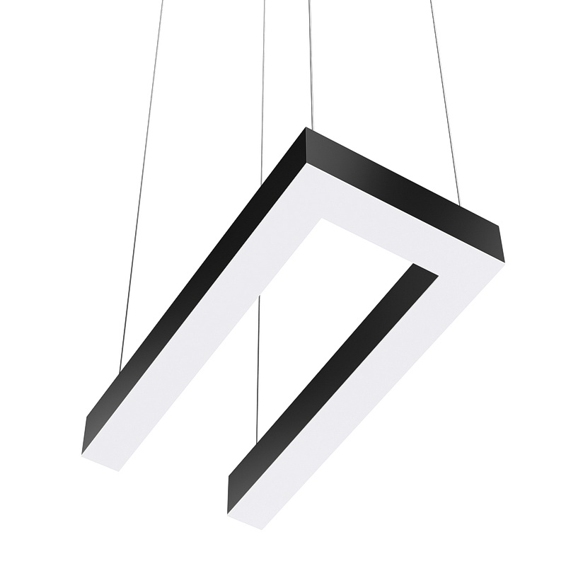 Партия данных светильников в форме "П" выполняется под заказ в нужных вам размерах. Корпус может быть выполнен в черном, белом и сером цветах. Цветовая температура на выбор: теплый цвет (3000К), нейтральный (4000К-5000К) или холодный (6500К). Материал корпуса – металл. Тип крепления – подвесной.